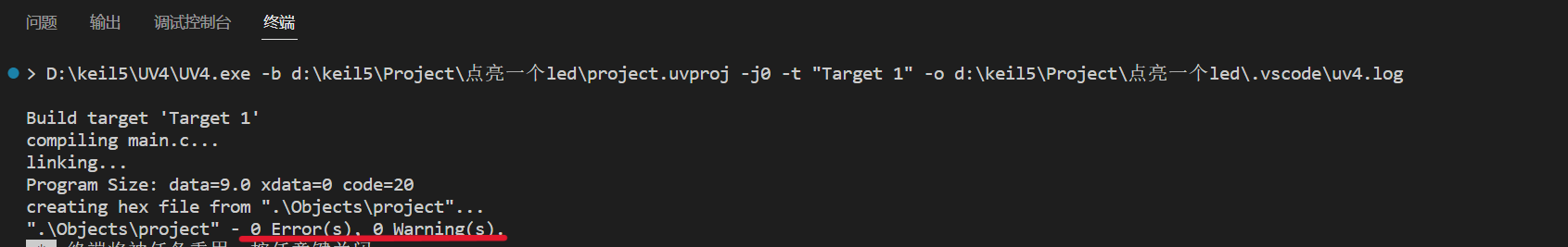 在终端出现0 Error(s)表示编译成功了: